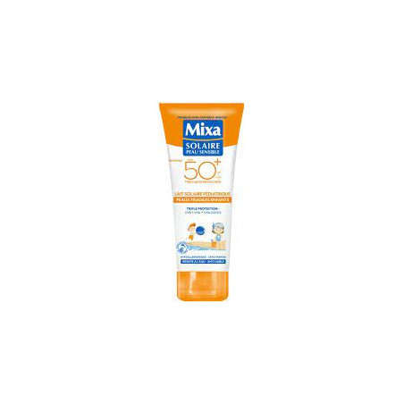 COMPOSITION MIXA EXPERT PEAU SENSIBLE: - HYPOALLERGÉNIQUE ET SANS PARFUM - TESTÉ SOUS CONTRÔLE PÉDIATRIQUE - FORMULE PLUS RESPECTUEUSE DE LA VIE MARINE La peau fragile des enfants est particulièrement vulnérable face aux rayons du soleil. Pour elle, Mixa a spécifiquement formulé son Lait Solaire Pédiatrique. FORMULE HAUTE TOLÉRANCE Une formule hypoallergénique, testée sur peaux sensibles et sous contrôle pédiatrique pour le plus grand respect des peaux fragiles des enfants. PROTECTION DÉDIÉE POUR LES ENFANTS Sa texture hydratante et fluide s'applique facilement sur le visage et sur le corps, sans effet blanchissant. Une formule anti-sable qui résiste à l’eau. Protège de l’exposition directe et de la réverbération. TRÈS HAUTE PROTECTION SPF 50+ UVB + UVA + UVA LONGS Des filtres solaires rigoureusement sélectionnés pour leur efficacité et leur tolérance pour protéger la peau des coups de soleil et de ses méfaits à long terme (préserve le capital soleil des enfants).